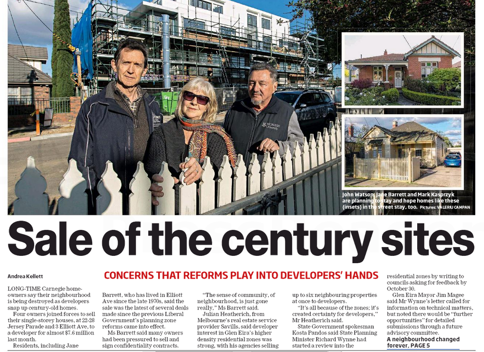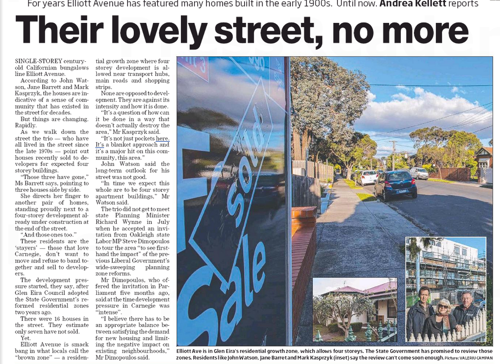 Heatherichs quote says it all “It’s all because of the zones”. End of story. Council has successfully ruined suburb after suburb and street after street and not only in Carnegie but even in leafy Caulfield North.