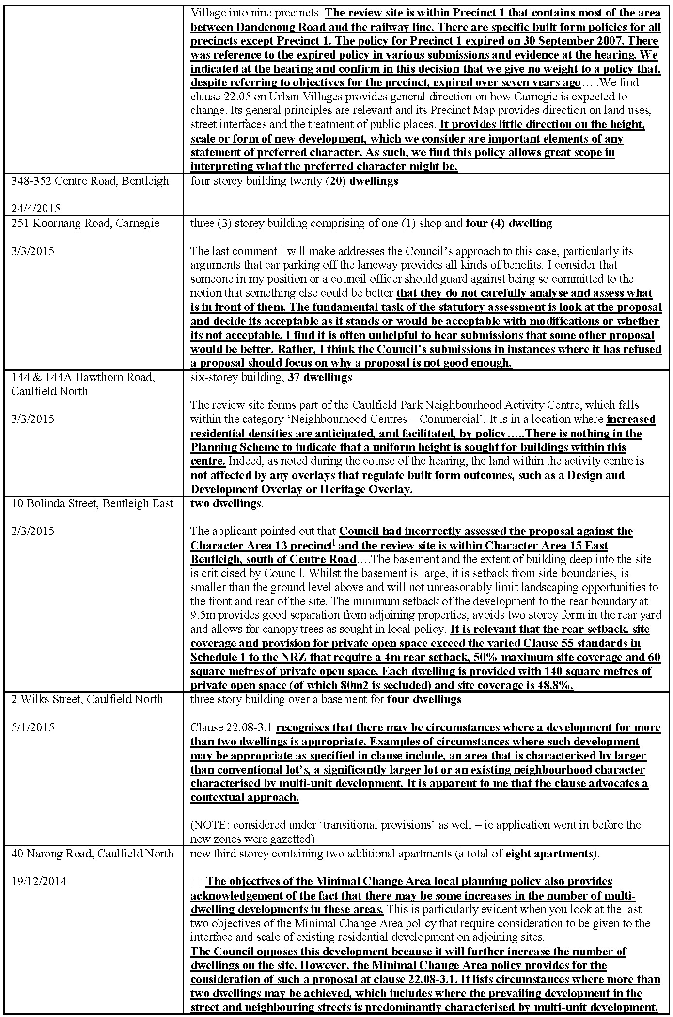To justify our claims, we’ve taken the time to go through every single published VCAT decision for the past financial year. Council claims 489 dwellings were approved. Our total is 288! (see below). Of these decisions however, we urge residents to carefully consider the comments made by the members and to note: