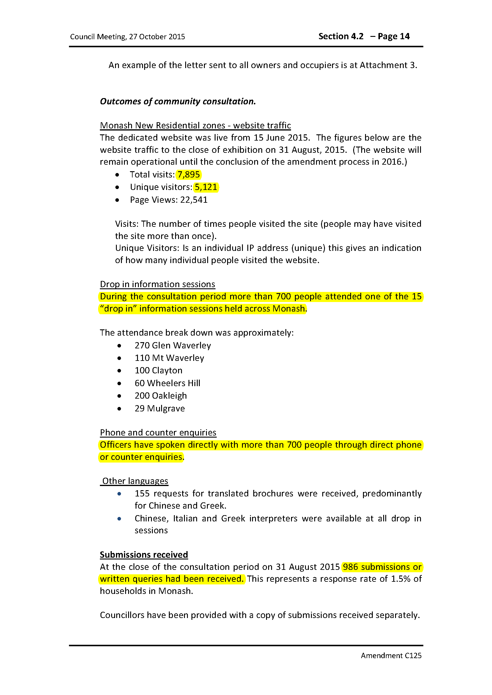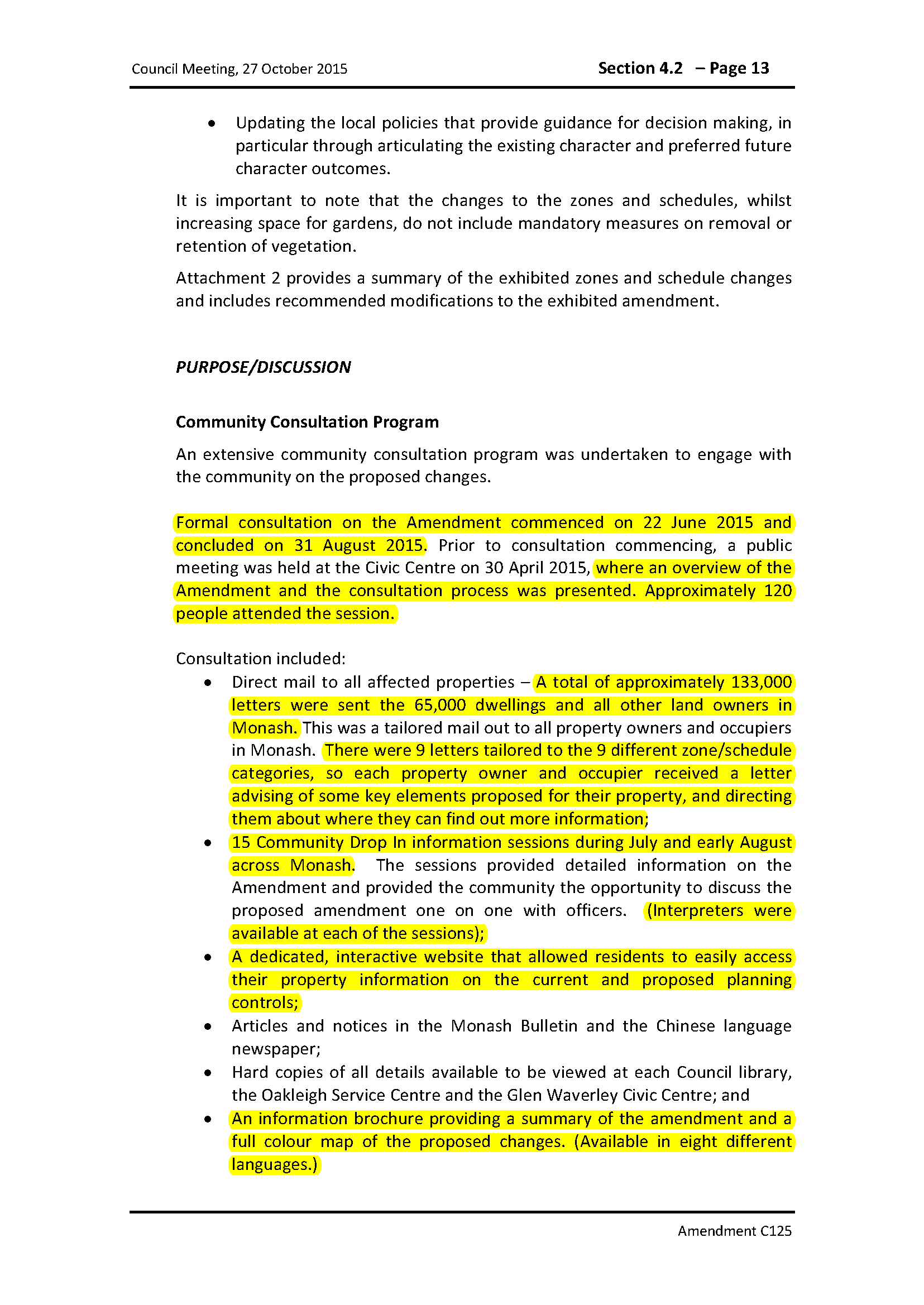 I don’t have a clue about the amendment that Monash is doing. At least they are giving people the chance to have a say and that is ten times more than our councillors think we ought to have.