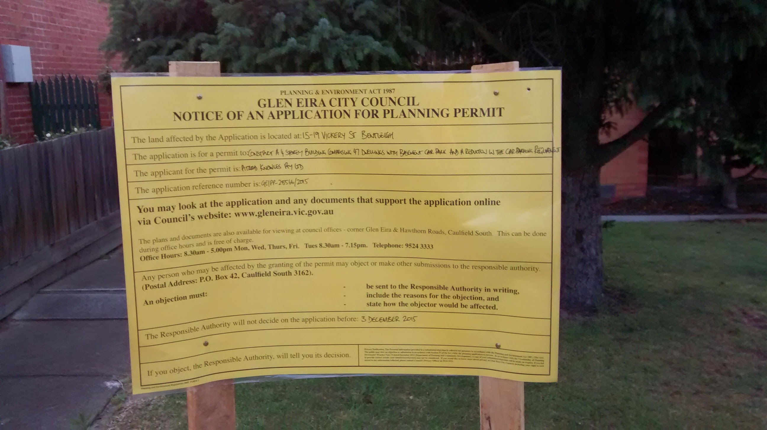 As an extension of this discussion, a nine storey development is proposed for a commercial zone at 322 Centre Road, Bentleigh (near Mahvo Street). This will be a precedent case for future commercial zone developments on Centre Road, McKinnon Road and Brewer Road (designated as urban villages!!). There is a Council Planning Conference at 6.30pm on MONDAY 23rd NOVEMBER at the Glen Eira Council Auditorium to discuss this development. Good attendance is expected, please attend to support. As no height restrictions exist for commercial zone developments, anything could happen if this proceeds. PLEASE ATTEND AND PROMOTE TO OTHERS