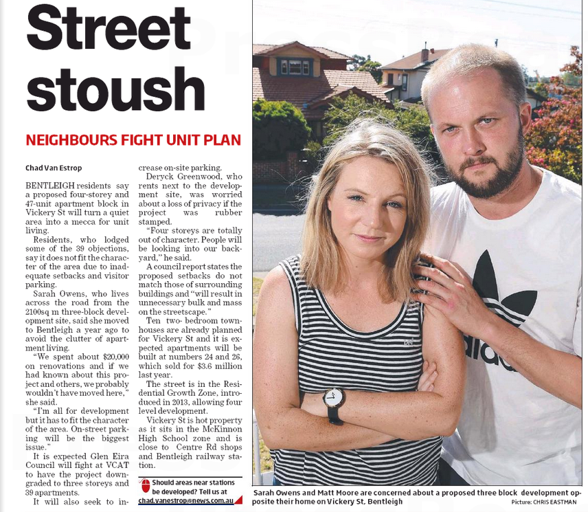 Re Street Stouch: The Liberals foisted RGZ on the residents of Glen Eira without strategic justification and they lost the subsequent election. That won’t help Vickery St residents though, as Council has clung tenaciously to the changes introduced by Amendment C110, refusing to review its Scheme repeatedly. Even the purpose of the zone has been perverted, with “diversity” meaning lack of diversity. Council hasn’t explained its undocumented change of policy, having previously argued that 2 storeys was appropriate where now it is arguing for 4 storeys. And why did they choose the amenity standards for RGZ that they did if they don’t expect any developer to comply with them?