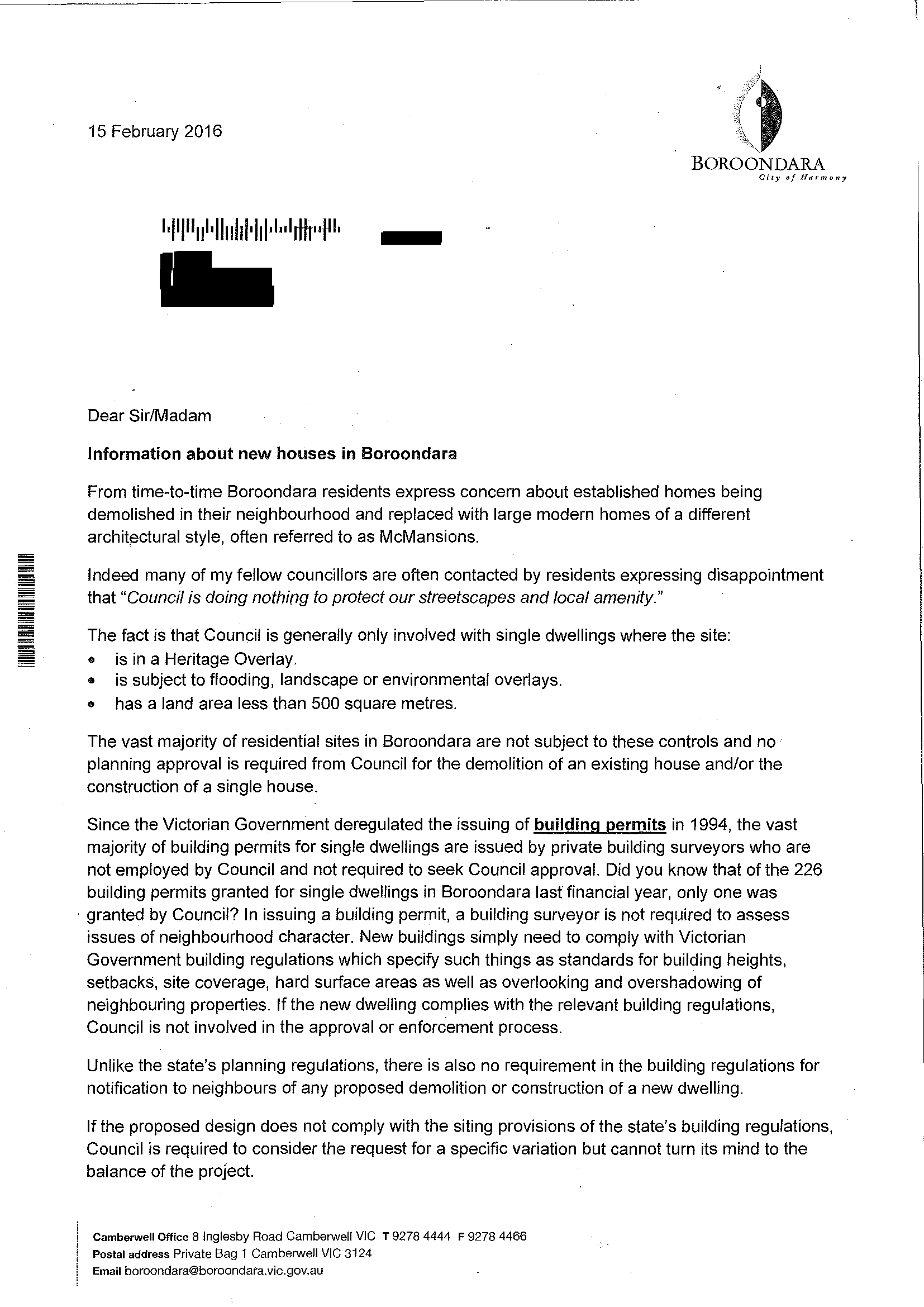 Whilst Glen Eira is content to spend thousands on its notorious ’11 cent flyer’ of misinformation and outright deceit, thankfully other councils are not cut from the same cloth. Below is the latest Boroondara effort – a letter sent to all residents regarding planning and asking for initial feedback.