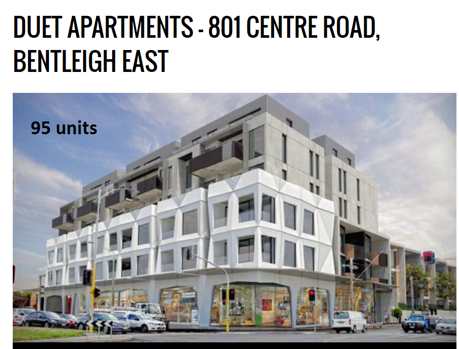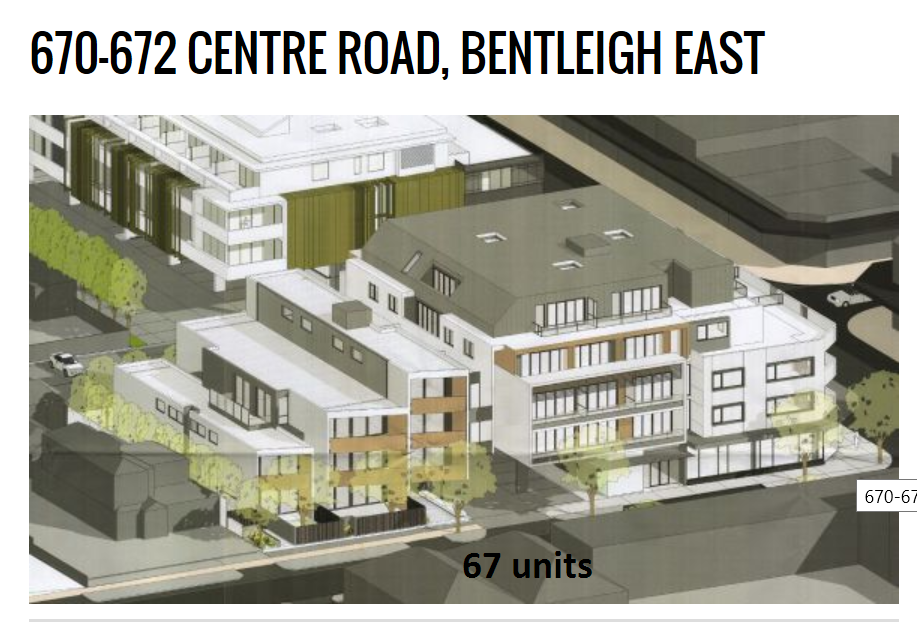 Here are some more developments taking place in our municipality. Whilst councillors have sat on their hands doing bugger all about an inept planning scheme and blaming VCAT for all their ills, developers have been having a field day. This is the inevitable result – 5 developments alone providing what the planning scheme says is the ‘average’ number of new dwellings per year! Please also note that some of these are not even in what is euphemistically called our ‘Urban Villages’ (Bentleigh, Elsternwick, Carnegie) but in the now defunct Neighbourhood Centres, which are supposed to have only ‘medium density development’.