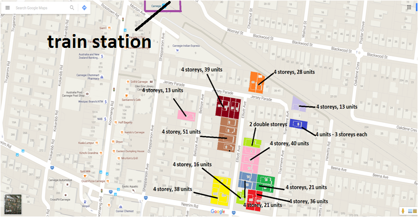 We live in the house next to the 51 units, 4 storeys, 3-9 Elliott Ave. It is on our north side! We will also be opposite 60 more units in Elliott Ave. Only 6 out of 20 houses left in our part of this small suburban street…… what can we say. We explored all avenues including going to VCAT, employing a Planner for quite a substantial fee. We achieved some minor concessions with shadowing and setbacks. It has been an exhausting process. I wonder if we are completely stupid to continue to stay here after 36 years, enjoying the peace and convenience of living in Carnegie. However, all has changed. The council has won. The peace and joy of living here is shattered. We will stay and see how things pan out. The world is changing at such a rapid pace around us and I’m afraid we’ve lost faith in the Council and it’s concern for the community. We will look back in a few years time at the implementation of these zones and wonder how it could happen. In a bizarre way it makes me empathise with the first people of our country and the bewilderment of colonisation! Rapid change can leave a community depleted.