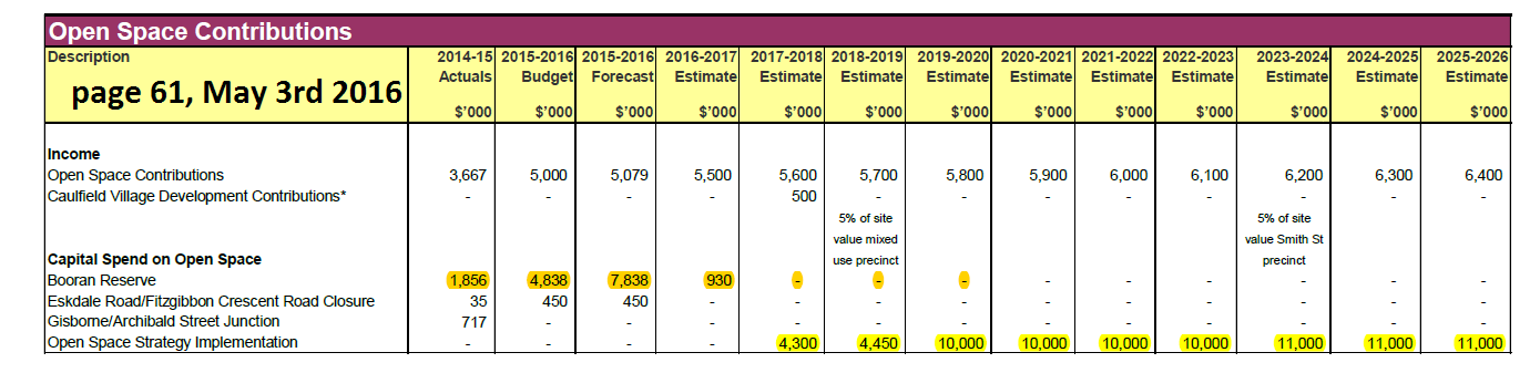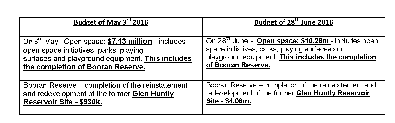 Thus in May, just 6 or 7 weeks ago, residents were lead to believe that all that was necessary for the completion of the Booran Road Reservoir was the expenditure of another $903K – as further evidenced by the screen dump below, where no further expenditure is forecast.. So now we suddenly learn that another $3 million plus is to go into this project? Why? Where’s the money coming from? And what is the total cost of this originally mooted $5m redevelopment?