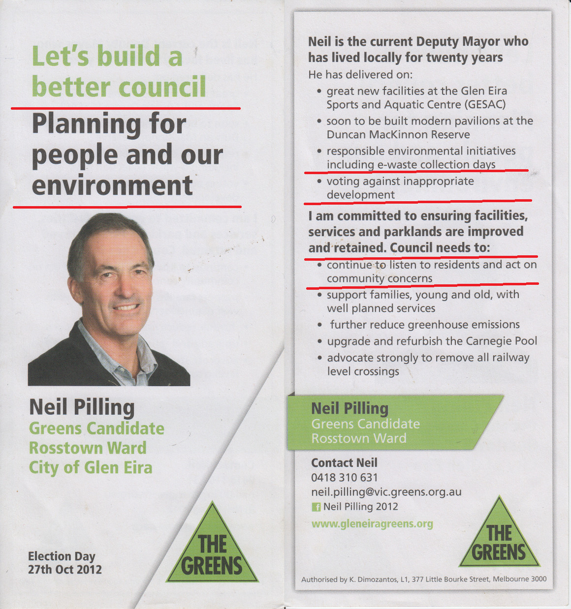 This man like ALL the councillors are (MODERATORS: word deleted) and incompetent fools as far as the planning scheme is concerned. The public concerns raised during the PS review have not been addressed and can be buy simply placing those concerns into overlays and height limits within each zone – particularly the commercial zones. Time and time again VCAT has shown this council the problems with our PS by overturning council decisions. These morons still insist that a policy statement is the real deal. THEY ALL NEEDTO GO.