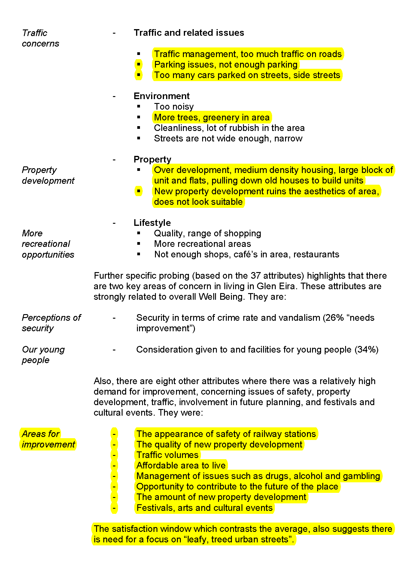 - The Planning Scheme Review of 2010 (6 years later, when residents echoed the same concerns regarding overdevelopment) specifically noted that ‘no structure plans’ were to be done.