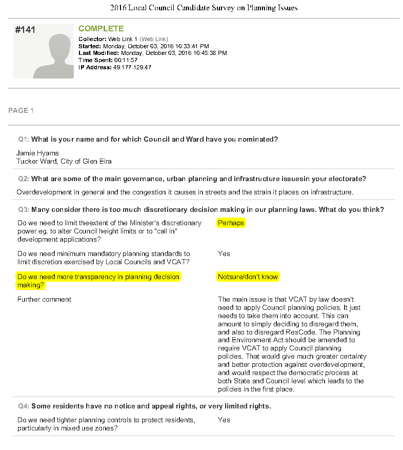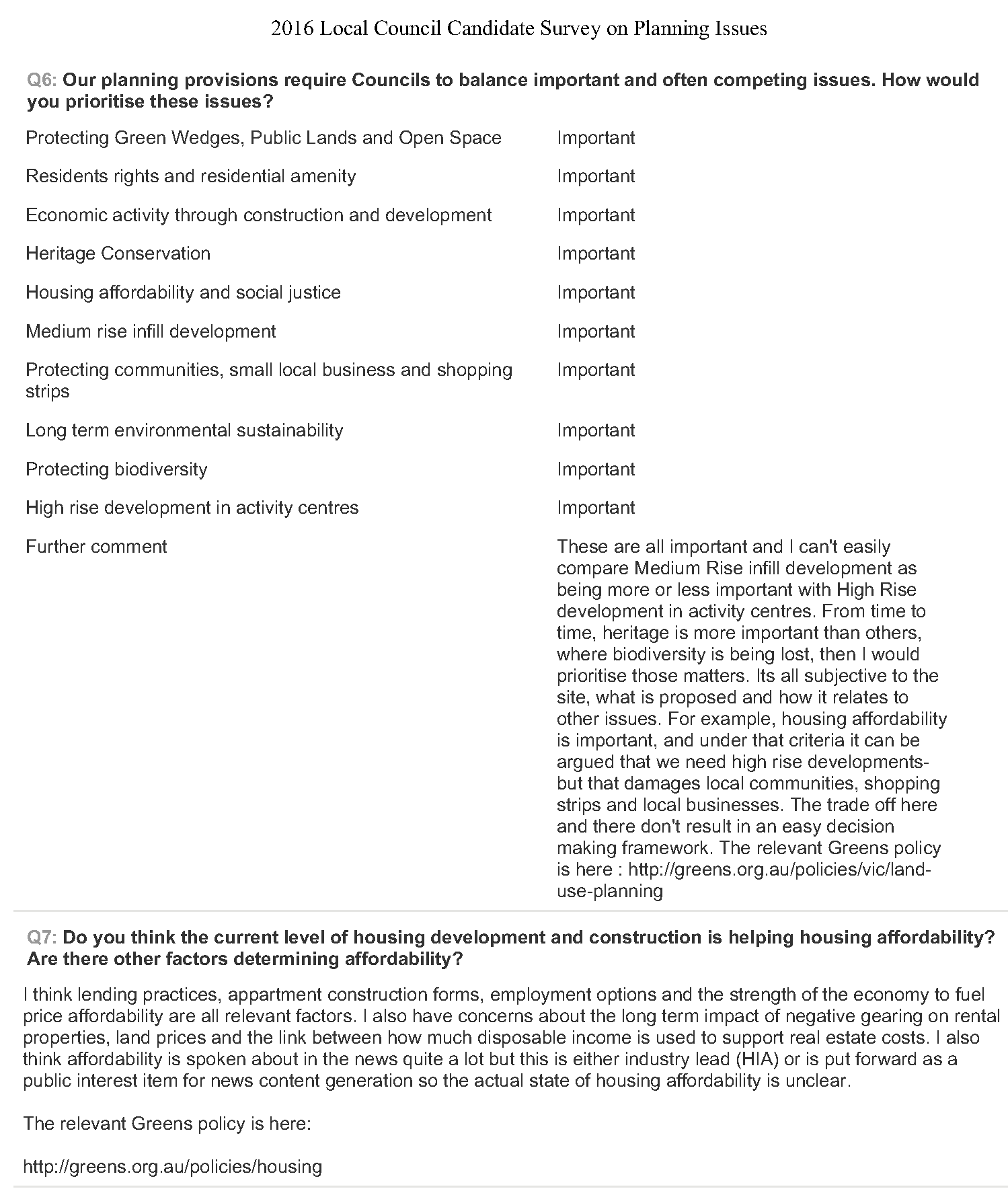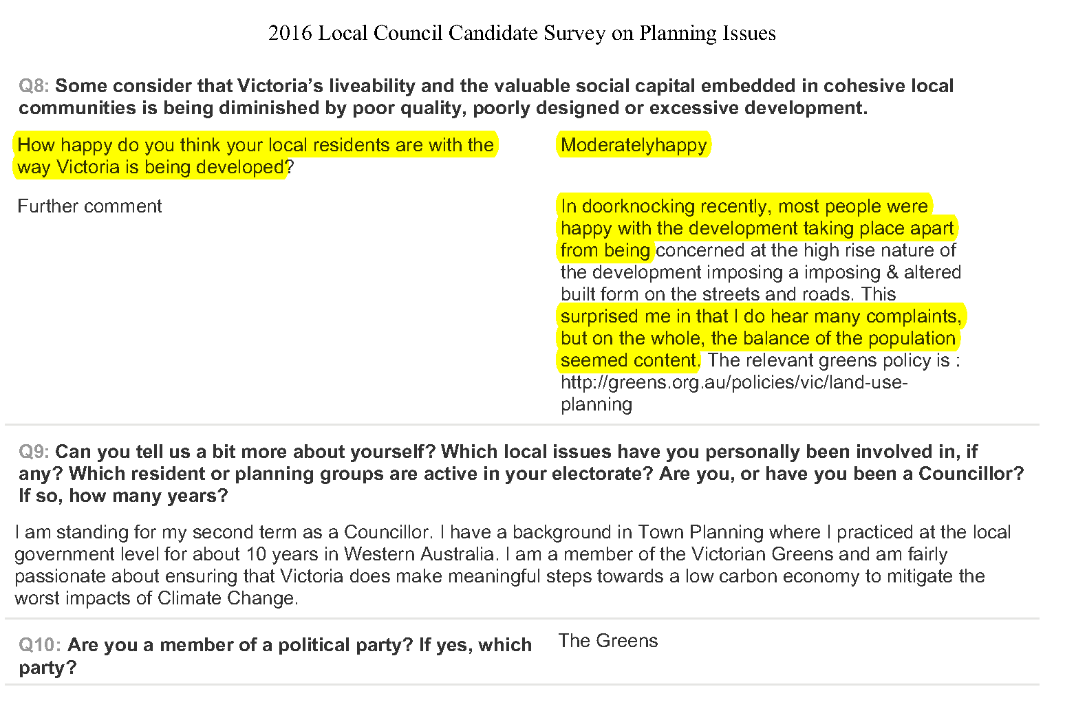 Once councillor nominations closed across the state, Save Our Suburbs sent out a survey to all candidates. 10 candidates from Glen Eira responded. The questions and the survey responses are available on the SOS website.