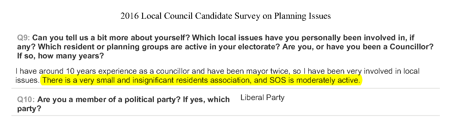 I cannot believe Sounness comments. He’s been on council for 4 years plus calling himself a planner. If he doesn’t know that tighter planning controls are needed then what on earth has he been doing on council. Hyams gives himself away completely with his probably not on community involvement and developer contributions. How anyone can serve the people with this philosophy is plain mind boggling.