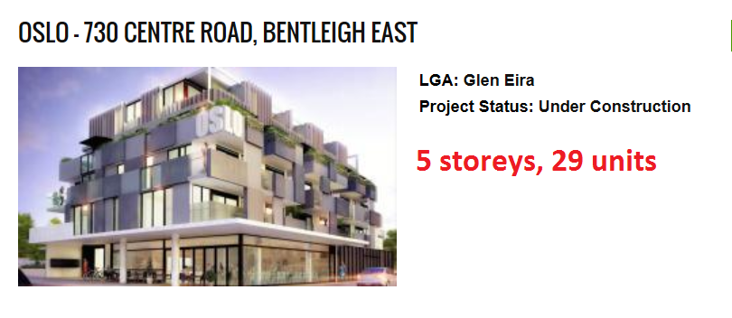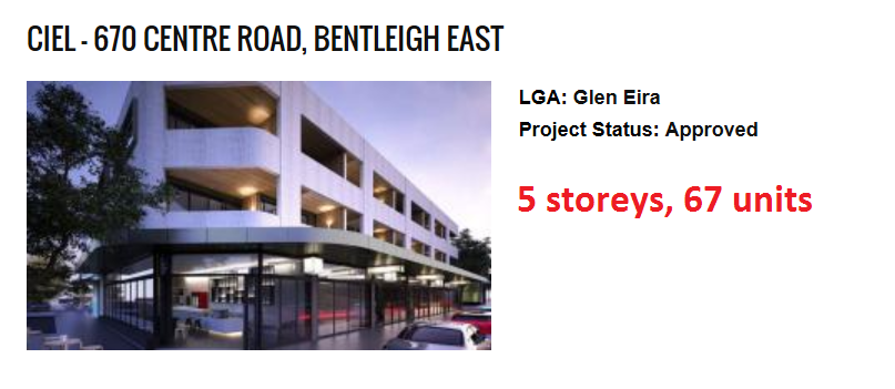 - Yet, council saw fit to impose a 5 storey preferred height limit for Bentleigh (an ‘urban village’) when East Bentleigh is already undergoing major 6 storey developments.