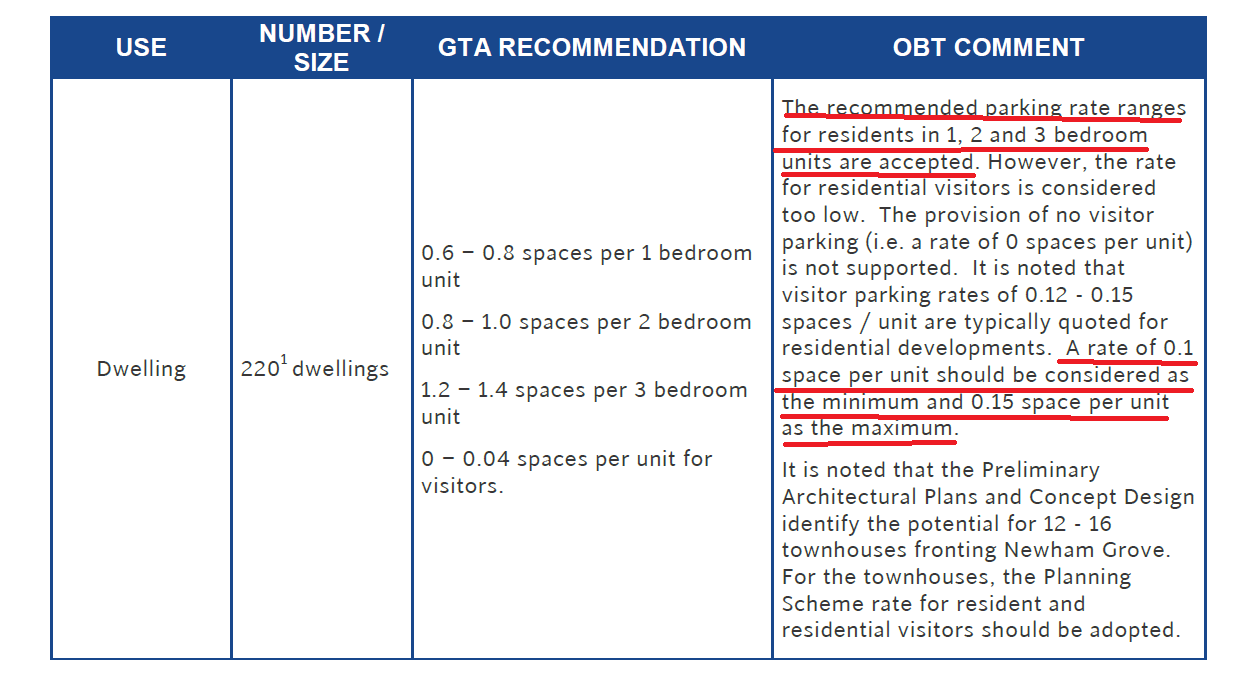 - The traffic report is equally dubious. And why there is support for a reduction in resident and visitor parking is simply beyond us given that it does not accord with council’s own planning scheme! (see image below).