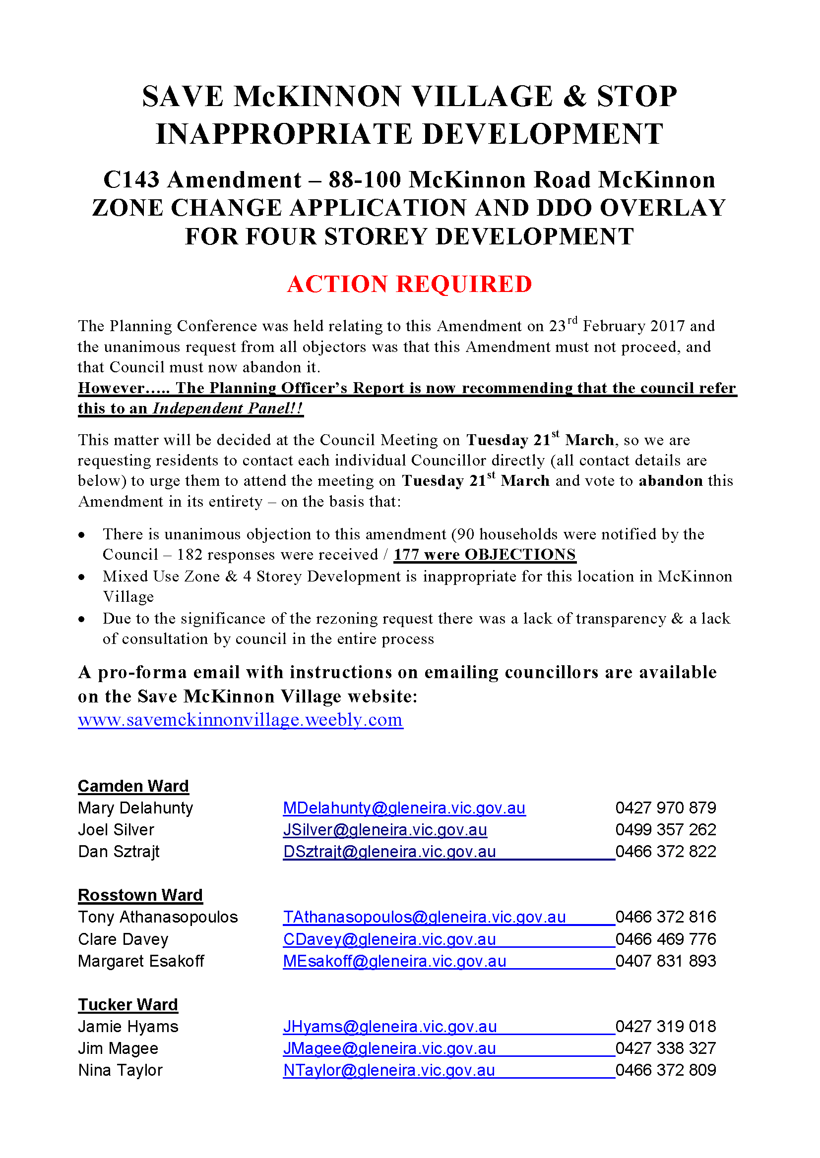 Really? Pro forma emails are a waste of time? Well, numbers count and if it means residents who are time poor have a means to put forward their objections to councillors then I say it isn’t a waste of time.