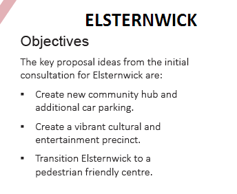Residents do have cause for concern given the ‘results’ which have thus far been produced by council in regard to the structure planning ‘consultations’. The plans are supposedly based on community feedback. Yet very little of what residents wrote is reflected in any of these documents. When even council is forced to admit that ‘opposition’ to ‘private development’ features prominently in most of the areas listed, but fails to make an appearance in the ‘objectives’ section listed for further action, then something is drastically wrong.