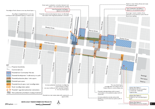 - Under take a proof of concept to redevelop the Bentleigh Rotunda site with acommercial caretaker presence at the rear and public open space adjacent to Centre Road.
