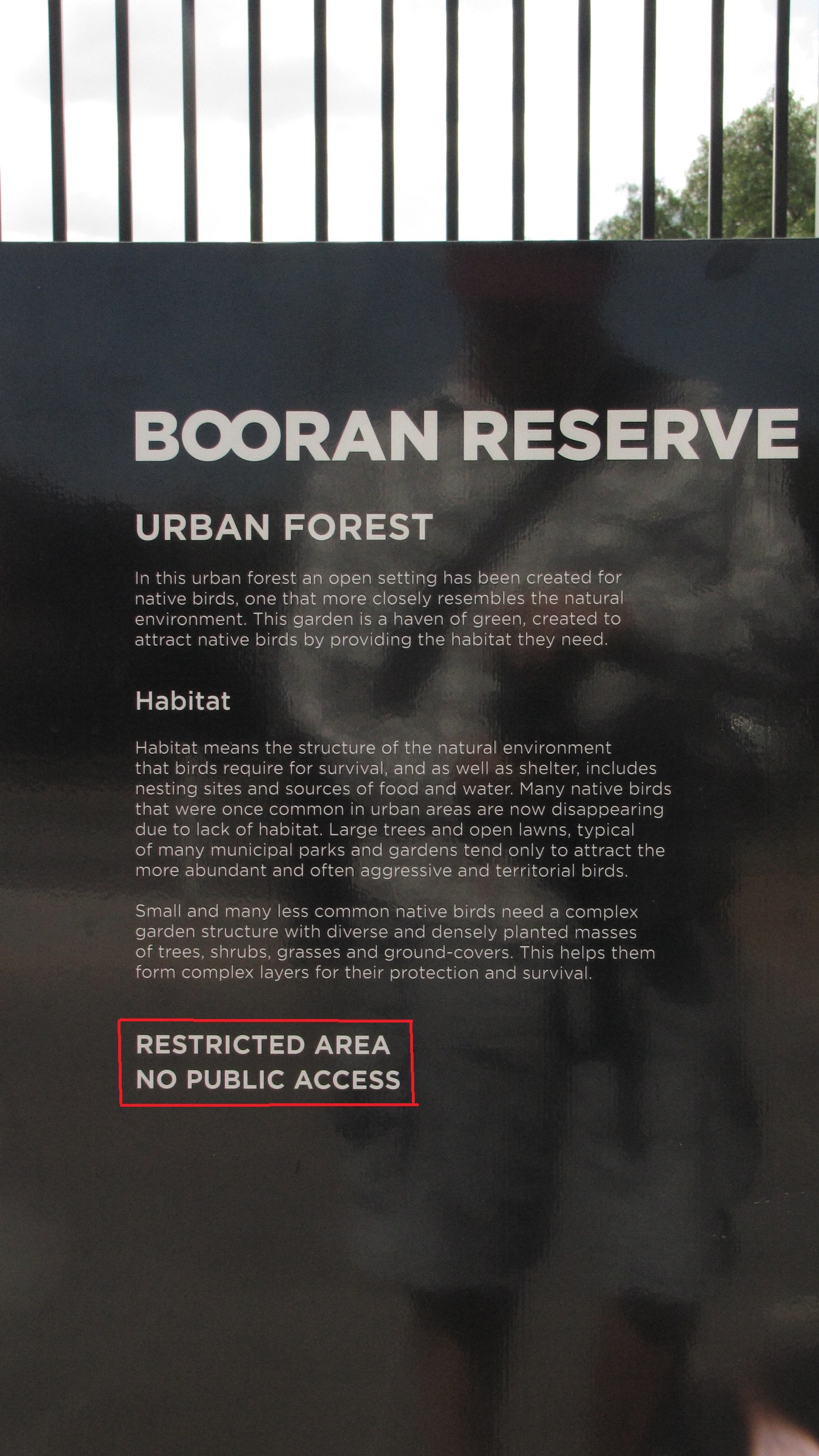 That why it’s a really big planning failure that approx one sixth of the reserve the quietest most relaxing area is off limits to the public, who may have wanted a quieter more relaxing time.