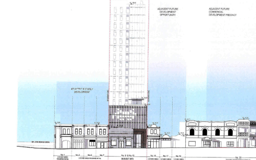The plans have already been removed from online planning applications register. Extraordinary that Council is so prompt here and so lackadaisical about builders and developers who transgress its Local Law. Clearly the application fails to comply with the purposes of the Heritage Overlay; doesn’t meet the Better Apartments “standards” [although technically it is exempt]; falls well short of some key requirements in the Guidelines for Higher Density Residential Development. All in all, it’s a crock. That won’t stop VCAT though—it’s not a 1968 office building designed by Yuncken Freeman.