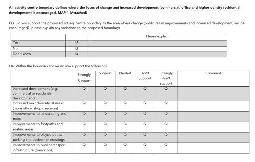 PS: As illustrations of how other councils go about conducting their structure planning consultation, we’ve uploaded part of the first survey conducted by Stonnington (late 2016 and another one from late 2015). Compare and contrast this with the kind of questions asked of Glen Eira residents and the information provided in both instances.