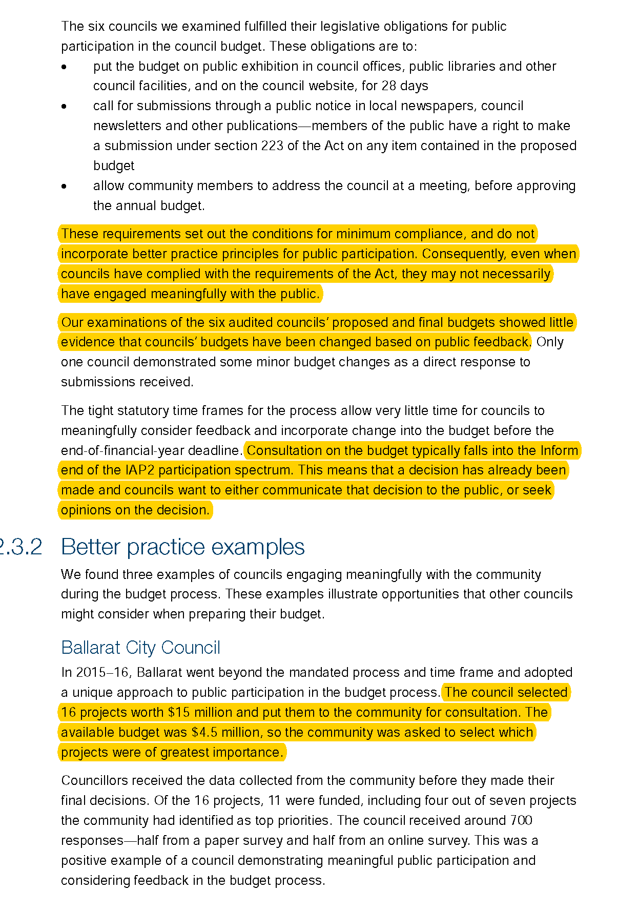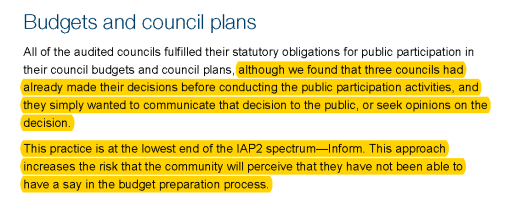 The ag has nailed it. The rules are abided by but nothing else. Imagine if the majority of residents actually had a say. I predict that we would have an entirely different budget and that wouldn’t suit council and its grand spending sprees.