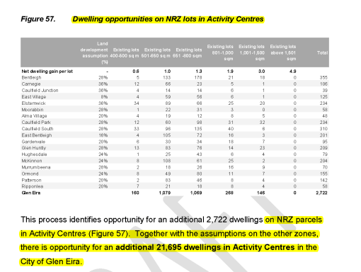 If we are to believe what is written in council’s commissioned housing report, then all this is about to change. Here are a couple of screen dumps from this document which refer to NRZ sites WITHIN ACTIVITY CENTRES! As we’ve stated – there are no NRZ sites in any activity centre. The fact that this ‘research’ is done on this basis can only mean one thing in our view – council will be extending the borders to most activity centres. And once extended we would bet that the classification of these sites will not be NRZ any longer!