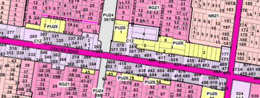- Both sides of Centre Road running from Thomas St to Jasper Road will now be available for at least 3 storey buildings. (coloured light green in the above map). These properties are currently zoned Neighbourhood Residential. The sites marked yellow on the following planning map show what is about to happen to this zoning and how many properties are impacted in just this strip of road.
