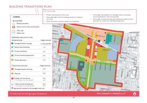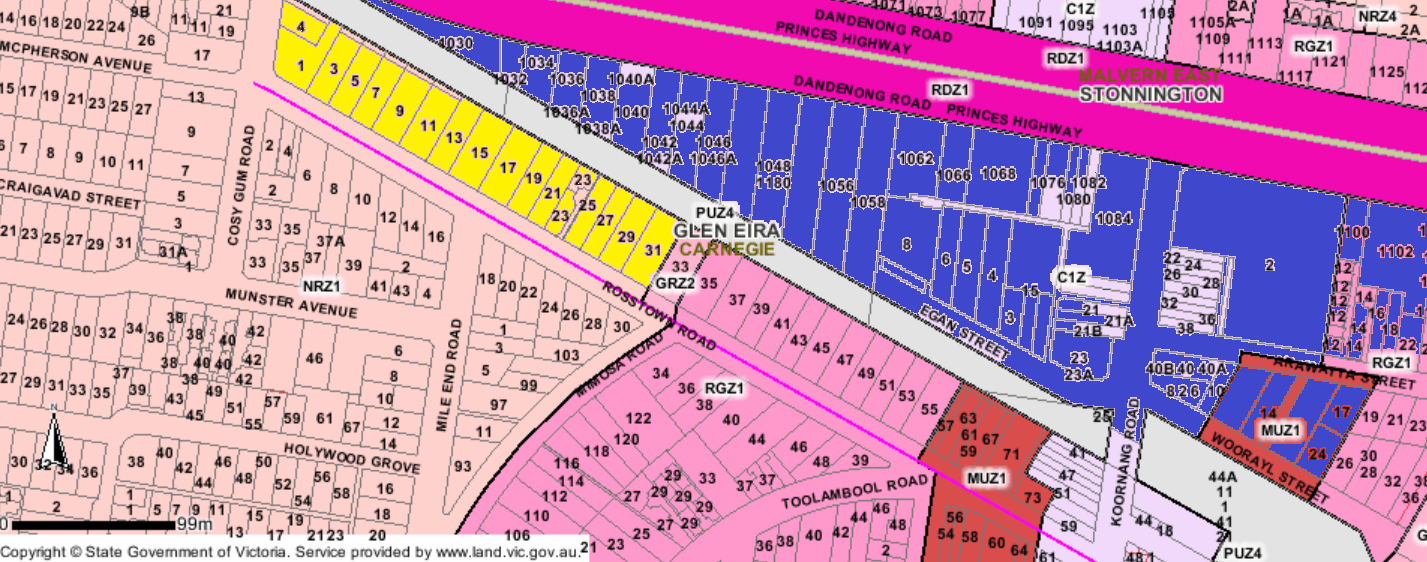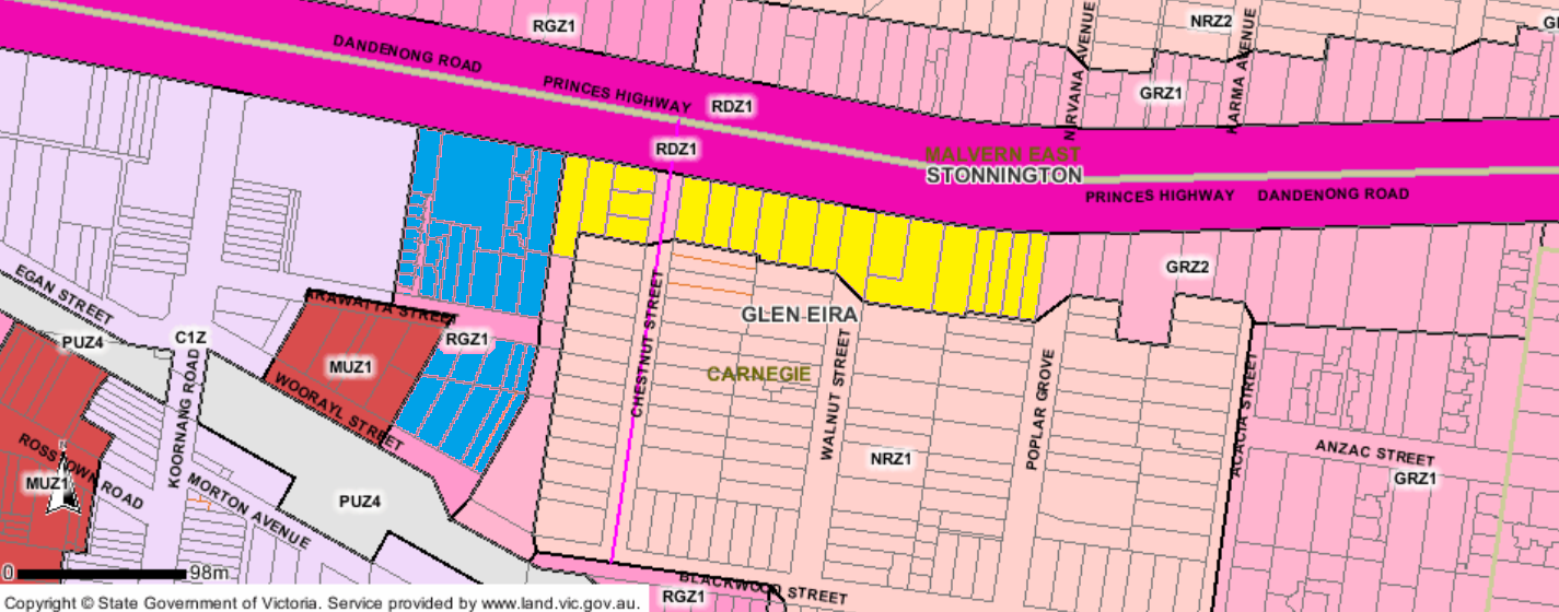 - Koornang Road, Truganini Road homes are now also candidates for 3 storeys, whereas they are currently zoned for 2 storeys (yellow)