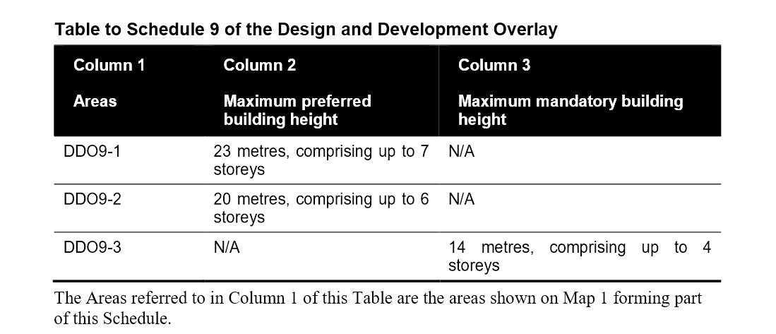Presented below are two screen dumps which show what Amendment C148 created plus the height limits for each of these Design and Development Overlays – ie DDO9 1 AND 2 were for a preferred height of 7 storeys and DDO3 was up to 4 storeys. Please note that all of these preferred heights are now well and truly exceeded according to these ‘concept plans’ – and not by a storey or two, but by up to 5 storeys.