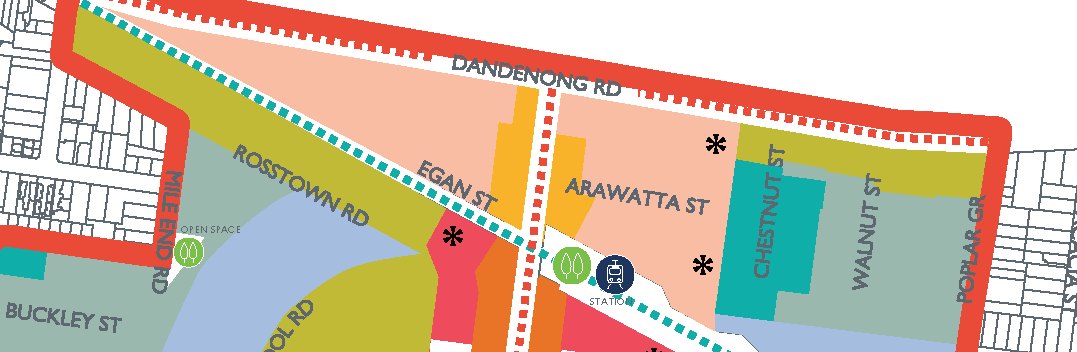 - To the north of Chestnut we again have 4 storeys along Dandenong Road overlooking 2 storeys.