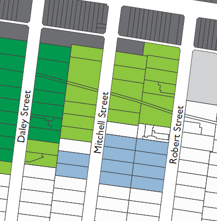 In Bentleigh, part of the new vision is to rezone Mitchell and Robert Streets from 4 storeys to 3 storeys (light green) but at the same time to ‘upgrade’ another 10 properties from 2 to 3 storeys (light blue).