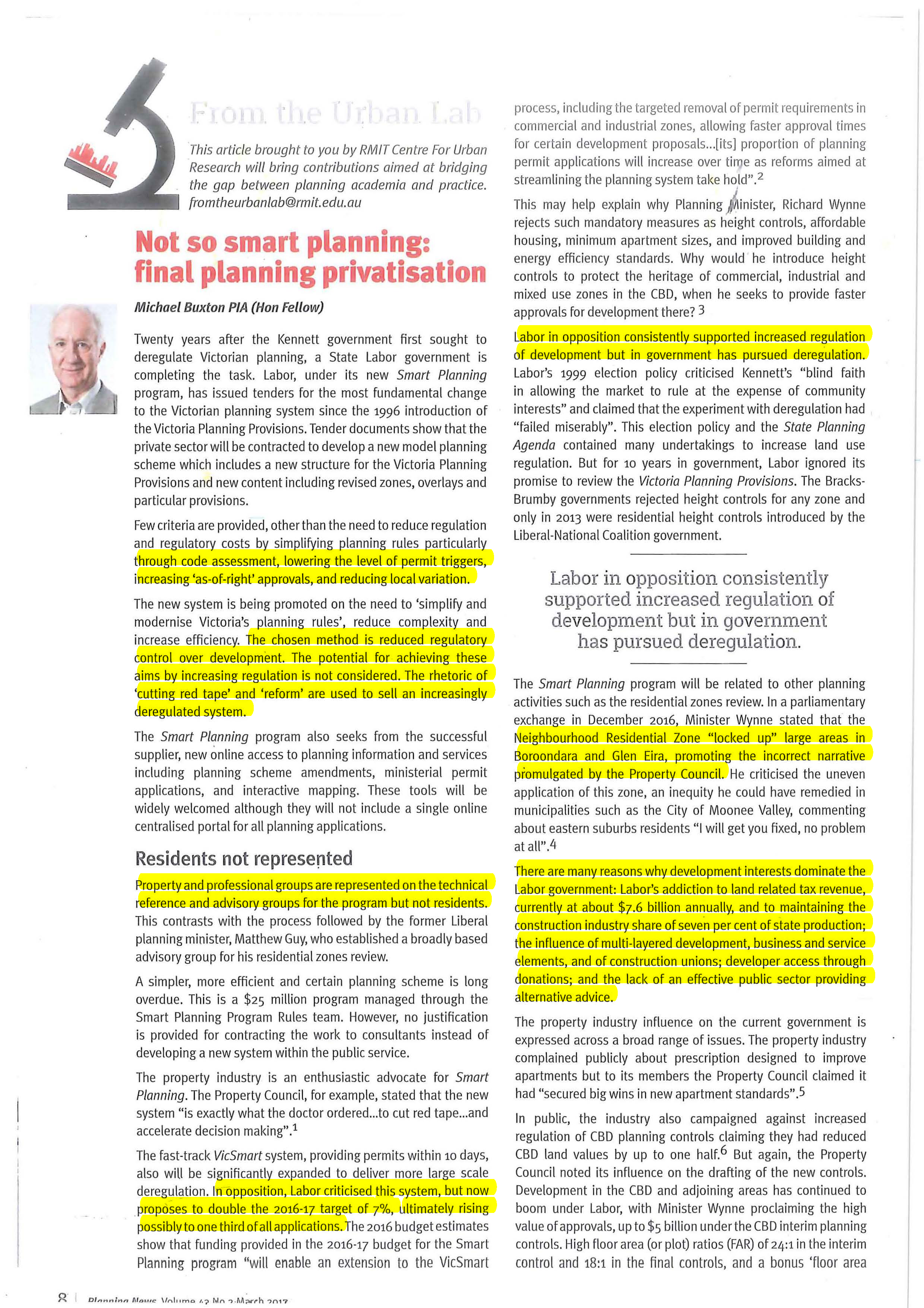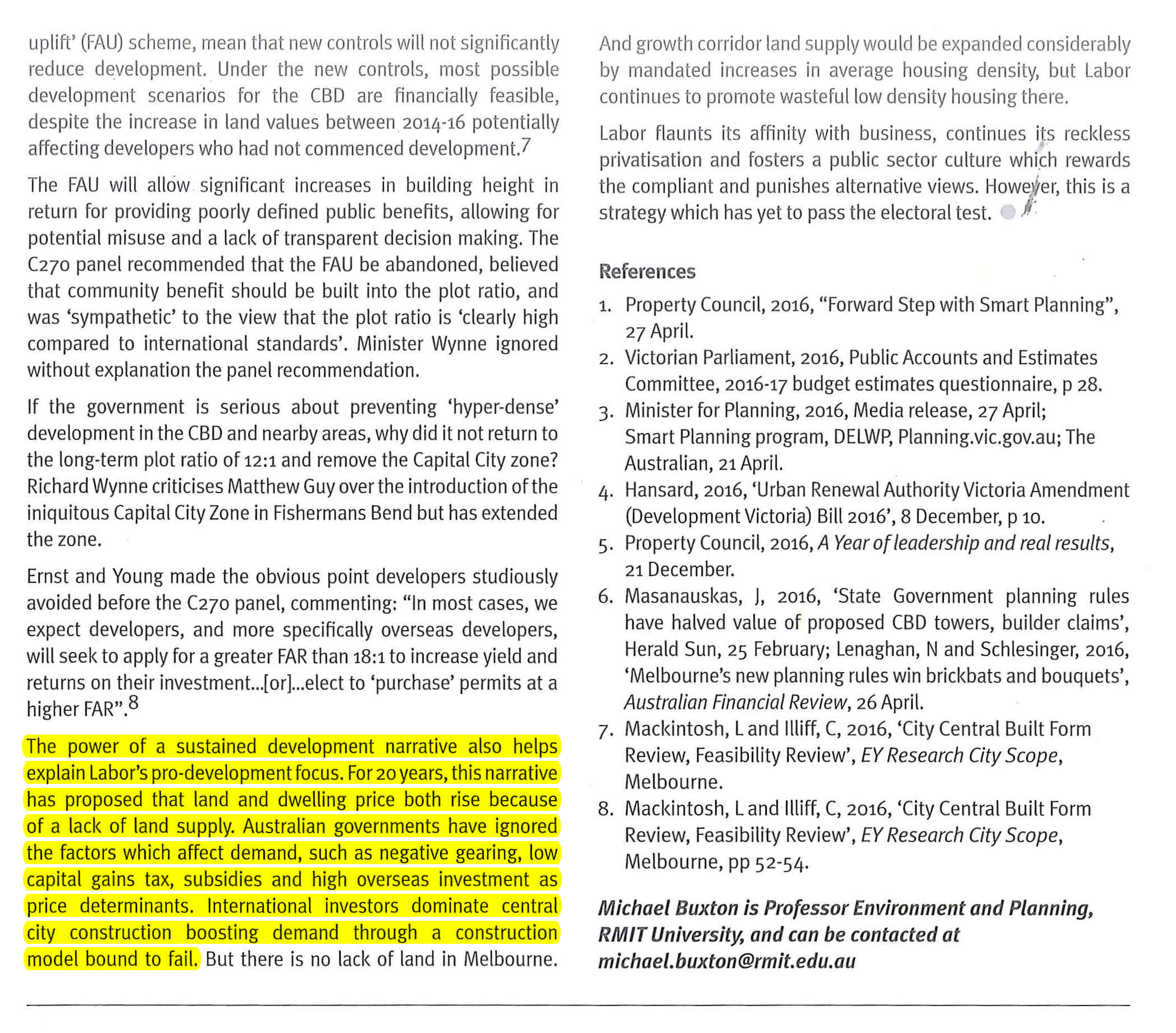 Finally, we’ve uploaded an article written by Prof Michael Buxton in March this year. Whilst this preceded the publication of VC110 and the release of the current discussion paper, most of the points made remain valid.