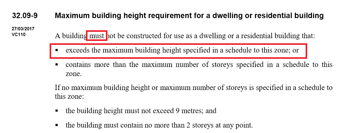 So, if council is determining applications based on its CURRENT PLANNING SCHEME, then the following is unlawful, devious, and inaccurate! BOTH applications exceed the current 8 metre mandatory height limit. VC110 specifically stated that if councils have different heights included in their schedules, then the schedules apply – at least for the next 3 years! Here is a screen dump of the legislation. Please note: ‘must’ and the fact that Glen Eira does have a schedule!