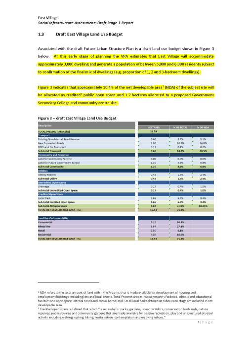 As far as we know, the criterion of ‘net developable land’ is used only as part of calculations for open space levies/developer contributions – and not for ‘structure planning’ per se. Its inclusion here raises countless questions.