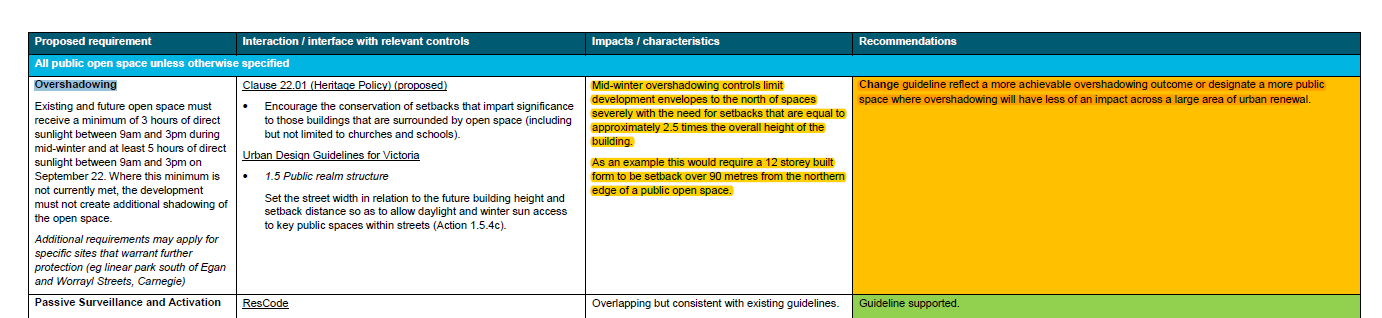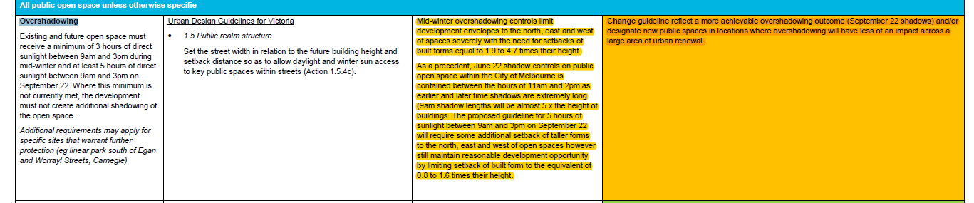 Further, the peer review (dated October 2017 ) has this to say on overshadowing in Urban Renewal areas. The verbage for Elsternwick is similar.