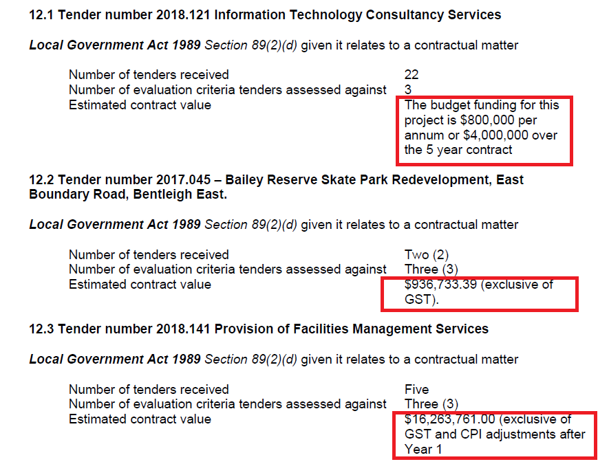 Last council meeting contained some very interesting tenders, to say the least. Money it seems is not a problem for Glen Eira, despite rate capping and the constant crying poor!