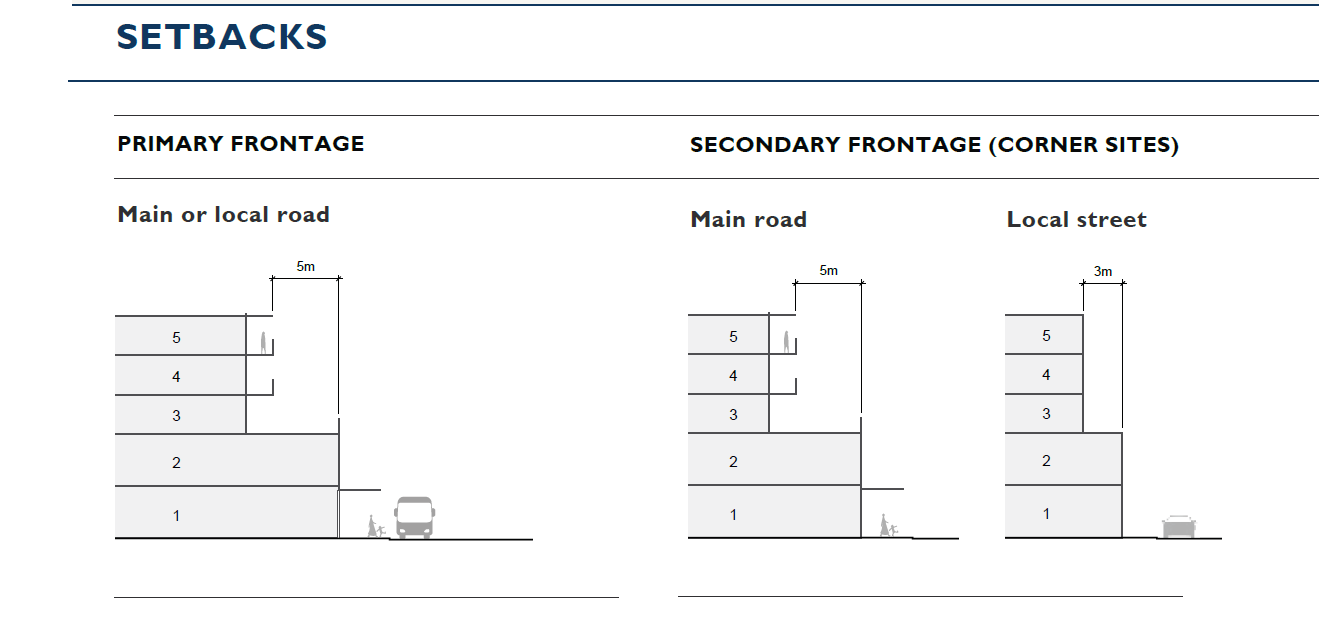 The commercial setback above the podium was reduced from 6 metres to 5 metres, which is in line with a number of submissions received