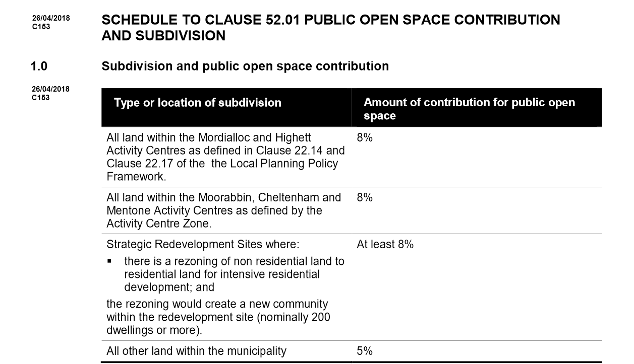 Very good example (again) regarding other Councils commitment to Open Space Contributions. Seems pretty straight forward for Council to address this situation as a matter of priority. The Glen Eira situation doesn’t make any logical sense when viewed from the eyes of residents. What also doesn’t make sense to residents is why Council continues to give waivers to developers for statutory car parking requirements and then commit exhorbitant funds to the development of car parks in activity centres.