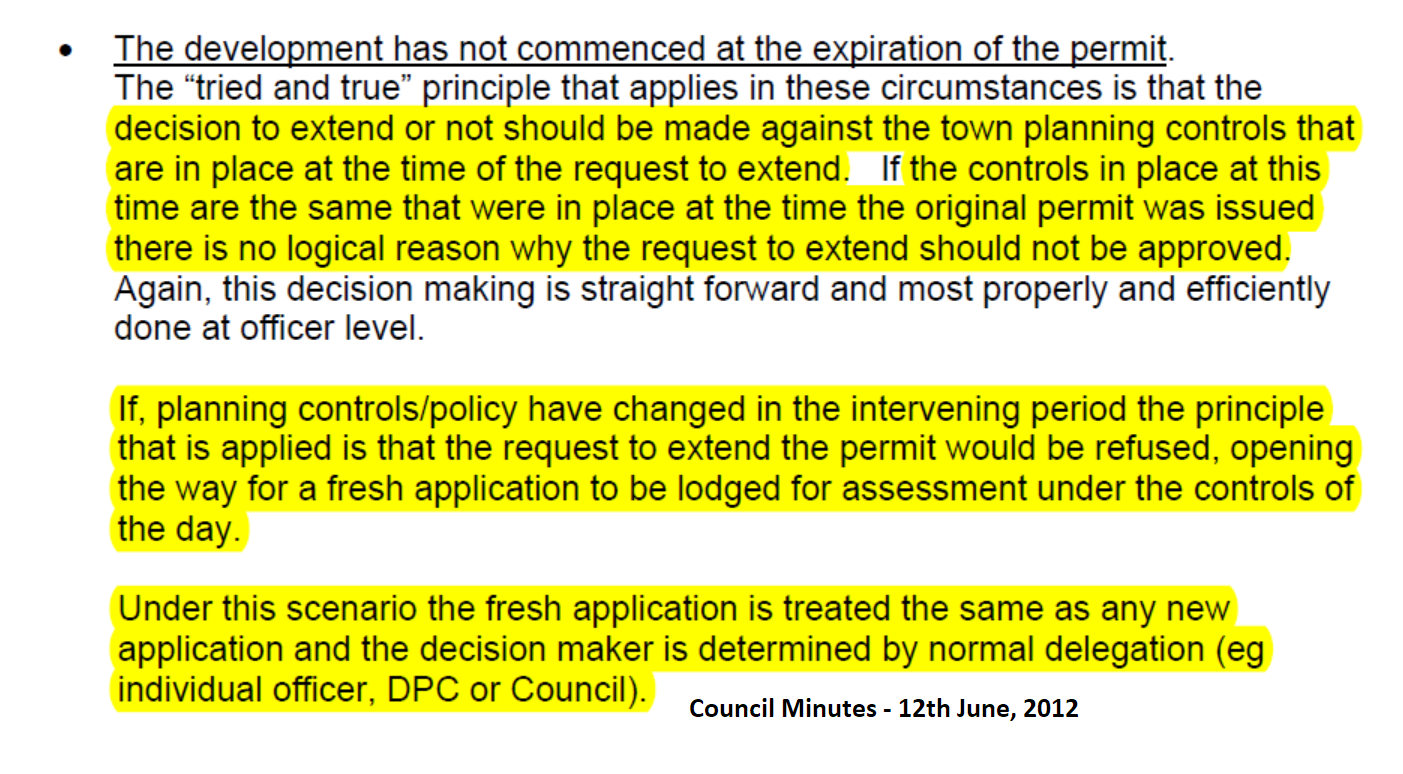 The issue of granting permit time extensions is important, especially when planning schemes and their controls have changed. The officer’s report for this item included this paragraph –