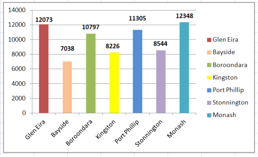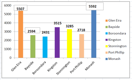 Whilst Monash would appear to have more building permits overall, their percentage of houses to apartments is double that of Glen Eira. From 2016 Monash has had 1313 building permits for houses compared to Glen Eira’s 770 permits. In the period from 2011 until the present, Monash single house number was 4503 whilst Glen Eira’s figure was 2250. In addition, Monash is 80 square km in size and Glen Eira a meagre 38.9sq.km.