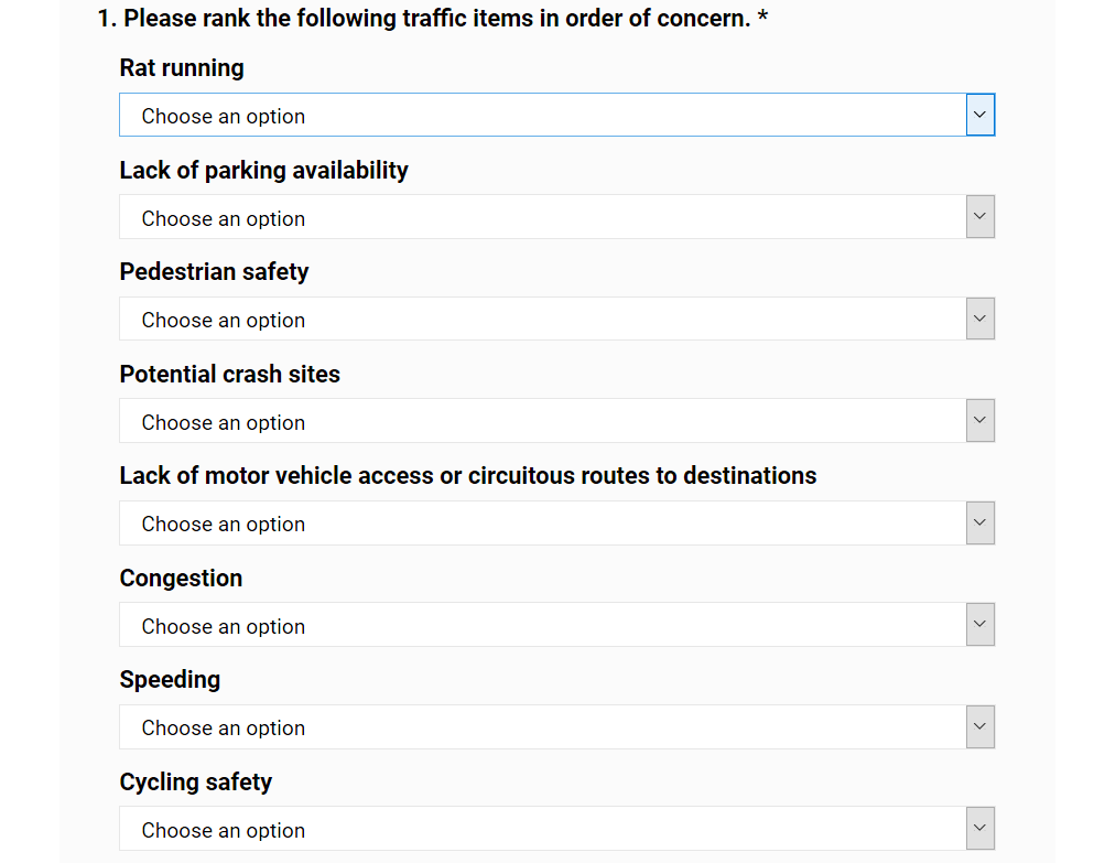 - The Have Your Say and survey questions need to be directly addressing the efficacy of the proposals in these reports. They don’t! Instead we get the following which isn’t asking the vital question ‘Do you think these road closures will address the parking and traffic concerns? Please explain”.