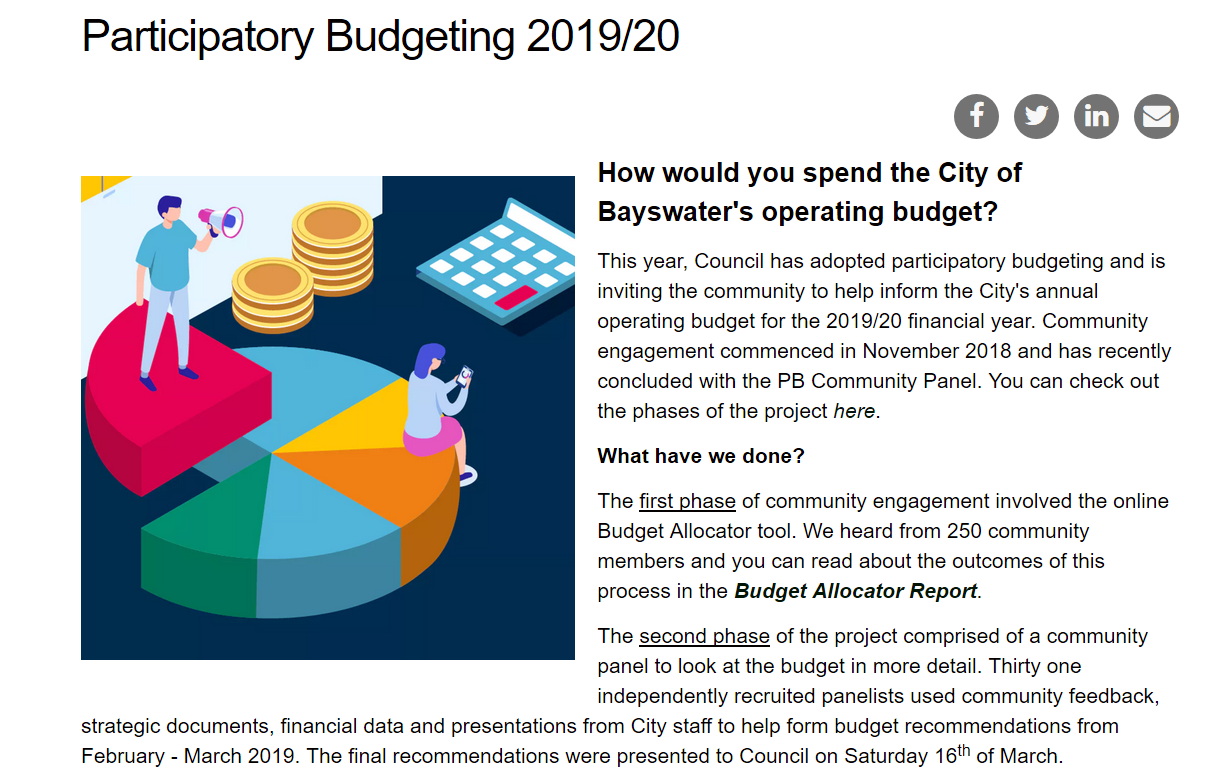 Thankfully other councils have started operating according to what is called ‘participatory budgeting’. Melbourne city council was the first to introduce this practice in 2015 we believe. This involves the establishment of a citizen jury who basically go through the available funds and determine their priorities as to short and long term expenditure.