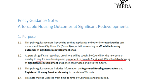Admittedly all of the above are ‘policies’ and hence do not have great statutory weight. They do however outshine anything that Glen Eira produces. If this council is serious about addressing the issue of the lack of social and affordable housing then going for a 5% imposition is only scratching the surface. Gillon and his mates (the VPA) are continuing to laugh all the way to the bank!