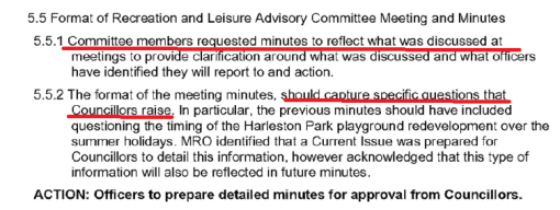 The following two screen dumps have been taken from the agenda items for next Tuesday night’s council meeting. They are part of the minutes for the Recreation Advisory Committee meeting.