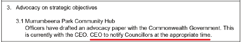 Council staff, other than the CEO, don’t work for us as ex-Cr Lipshutz delighted in reminding us periodically. The CEO is responsible for the written record of an assembly of councillors [however called], including the matters considered. It is left deliberately unspecified what constitutes a “matter”, and IIRC Local Government Inspectorate has in the past provided advice that Minutes should contain the barest minimum of information, seemingly at odds with general principles of transparency and accountability. The Act specifies the Minutes should be reported “as soon as practicable”, and I doubt 5 months satisfies that requirement.