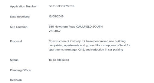 It hasn’t taken long for the purchaser of the Godfrey’s site in Hawthorn Road to get his application in. Another high rise proposal whilst Council sits on its backside and does nothing about its neighbourhood centres. Residents are already fighting a 9 storey proposal. Now they will have to address this new battle and fork out thousands upon thousands of dollars in fighting the proposal. We place the blame squarely on this council. It is unconscionable that residents must pay the financial price to safeguard their residential amenity all because of council’s incompetence and unwillingness to undertake work that other councils have been doing for well over a decade.
