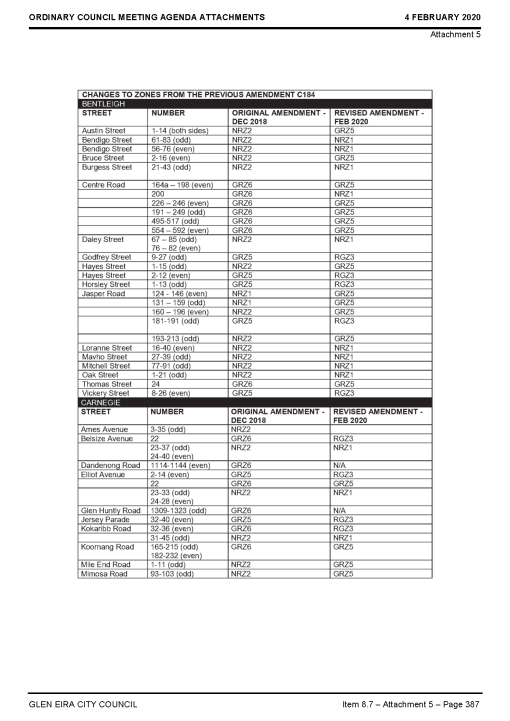 - Our estimation is that about 180 sites in Bentleigh and Carnegie have been ‘upgraded’ so that they will now go from 2 storey height limits to either 3 or 4 storey height. Others that are currently 3 storey will now be permitted 4 storey. No justification for any of these changes has been provided. Nor is there any explanation provided as to why Godfrey Street in Bentleigh from number 9 to 27 will now be assigned a 4 storey height limit. Why not number 29 Godfrey Street, especially since the argument proposed by council is that they are attempting to ‘fix’ the problems of 2013 when single streets had multiple zonings. This kind of decision is simply repeating the mistakes of the past. Literally unbelievable! The same questions apply to changes to other streets throughout these suburbs.