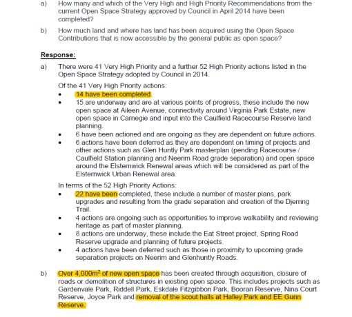 - We have to laugh at their so called ‘achievements’ when we read ‘input into Caulfield Racecourse Reserve land planning’! etc.etc.etc.