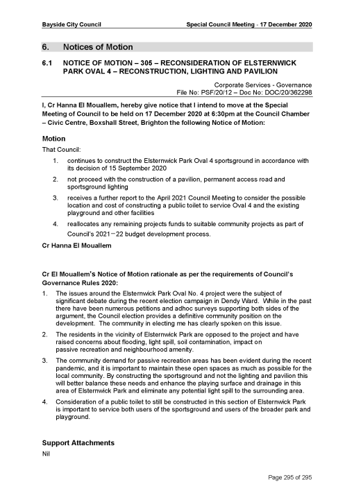 Notice’s of Motion we maintain are integral to good governance and to allow councillors to effectively do the job they were elected to do. As an example we have uploaded the current proposals from Bayside City Council. Readers should note the following: