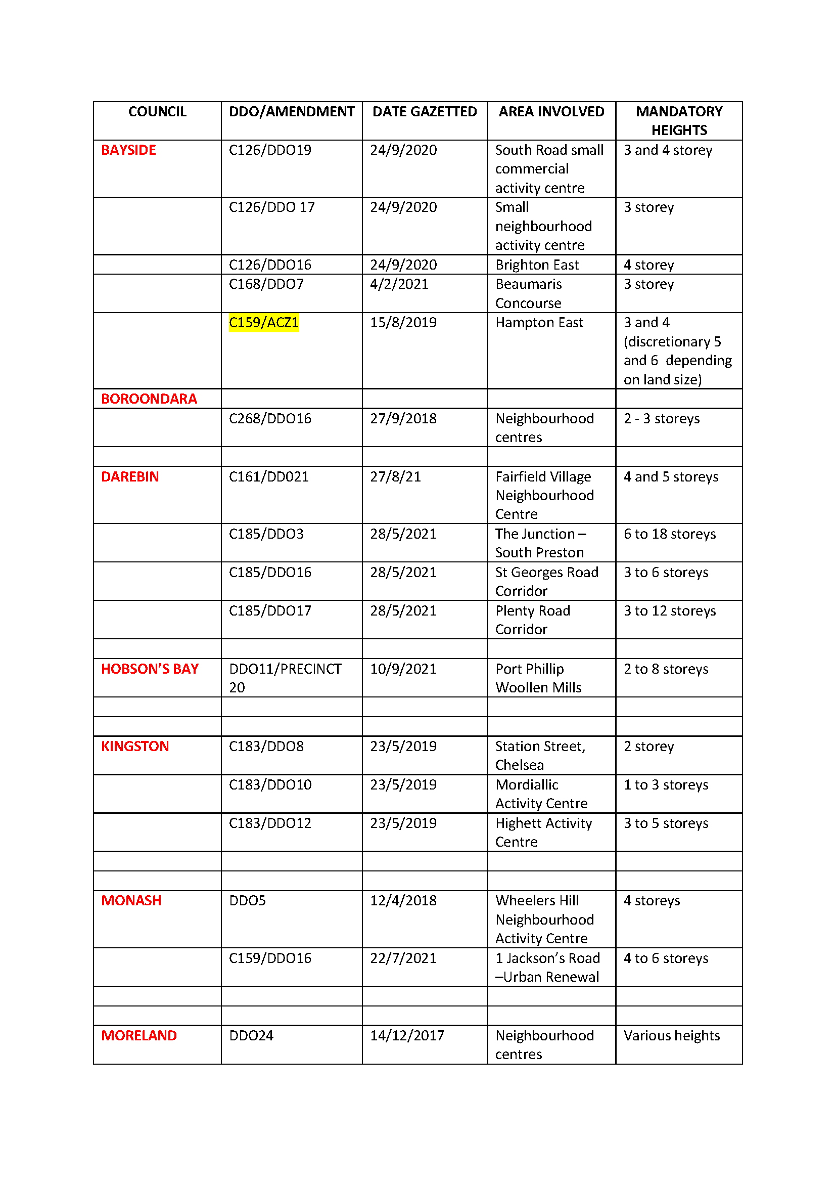 We have taken the time and trouble to go through gazetted amendments from other councils which have all had mandatory height controls enacted in their precincts. All of these are well within the 10 year limit that Athanasopolous asked for. They even include some Activity Centre Zones, where none of the heights come close to what Glen Eira is asking for.