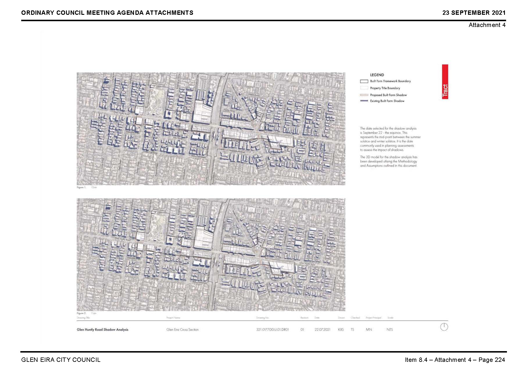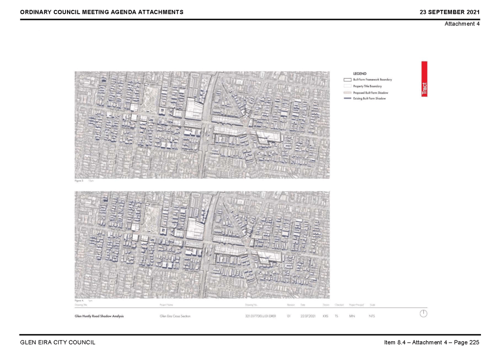 Even here, Glen Eira is staggeringly inconsistent. For example: the recently adopted Glen Huntly structure plan DID INCLUDE shadow diagrams – PRIOR TO MINISTERIAL APPROVAL! Like Carnegie, Glen Huntly is also a major activity centre. So, the question must be asked, why the far more fulsome publication of documents in one instance and the with-holding of important documents in another? Admittedly, what was published for Glen Huntly was not the entire report, and the diagrams were practically impossible to decipher (deliberate?) – but at least they were public and before any vote was taken! Here are some screen dumps illustrating this: