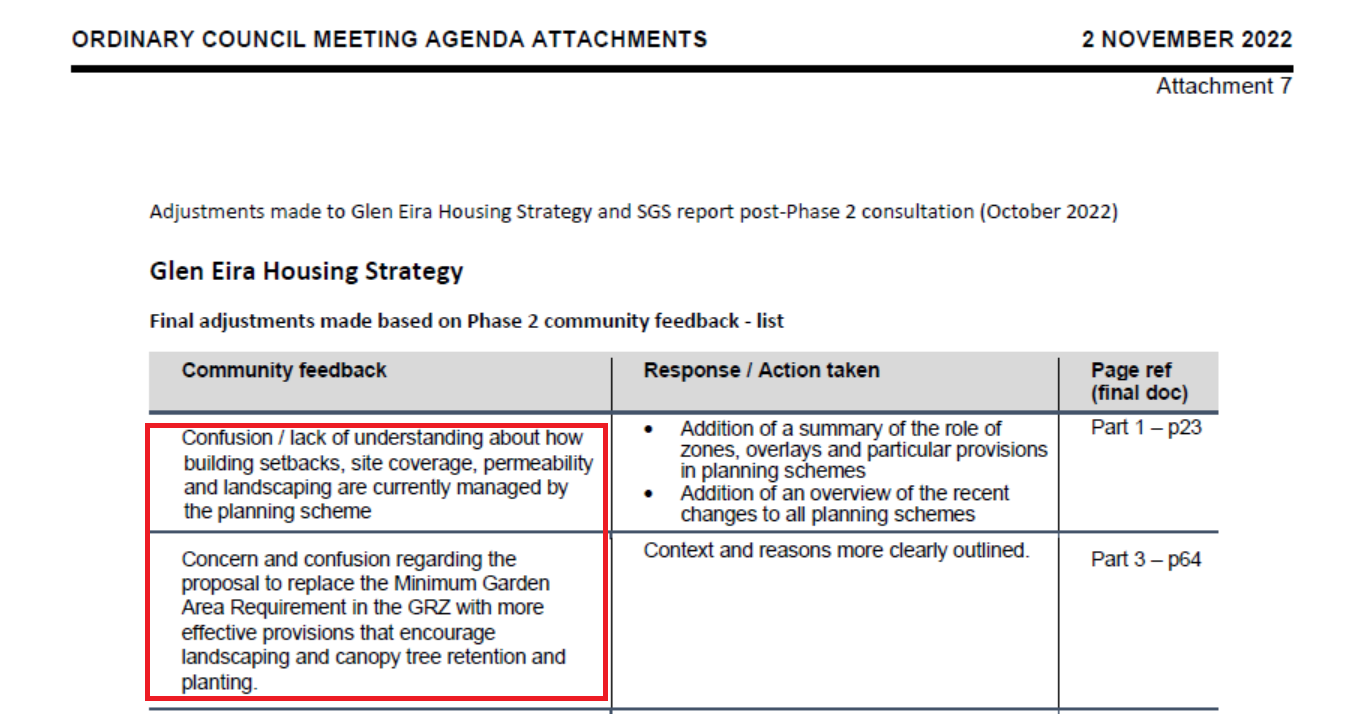 Very, very little has changed – apart from removing heritage areas from the 4 storey zoning (which never should have happened in the first place and in many cases is already too late to repair the damage done) and the decision not to upgrade a handful of 2 storey streets into the proposed 3 storeys. Why this change is made contradicts what was stated in the first version! The end result is still thousands of properties that will be impacted by this strategy and more and more density everywhere in Glen Eira.