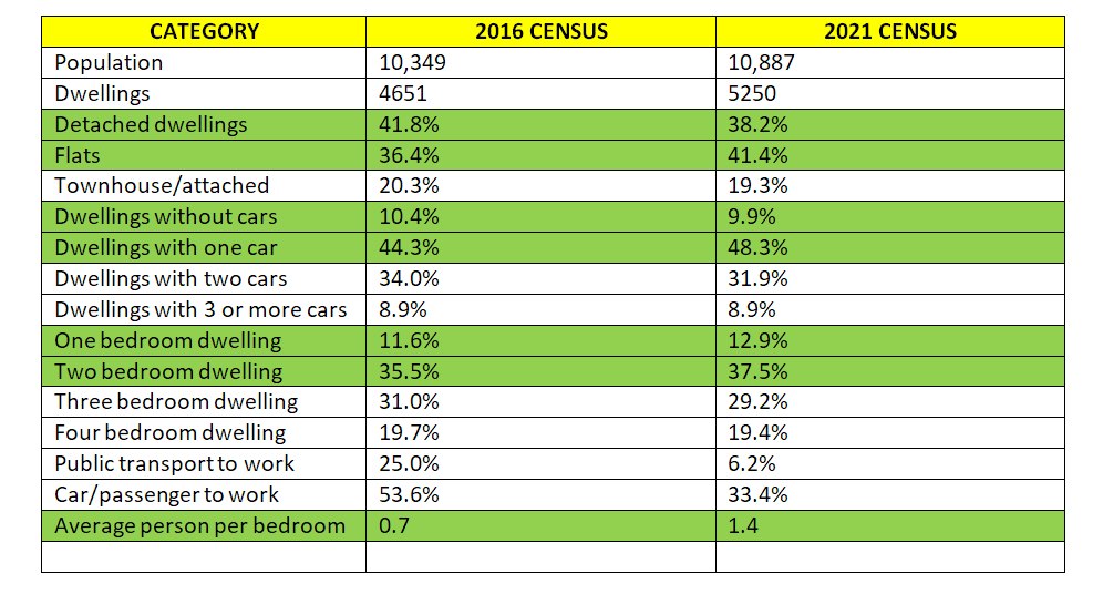 Yes, trends are important, but the overall council analyses thus far seems to have largely ignored what the 2021 census results reveal about the present and the recent past. In order to see exactly what has been happening in Glen Eira over the past 5 years, we have compiled the following tables, from the 2016 and 2021 census data. They provide a good insight into: